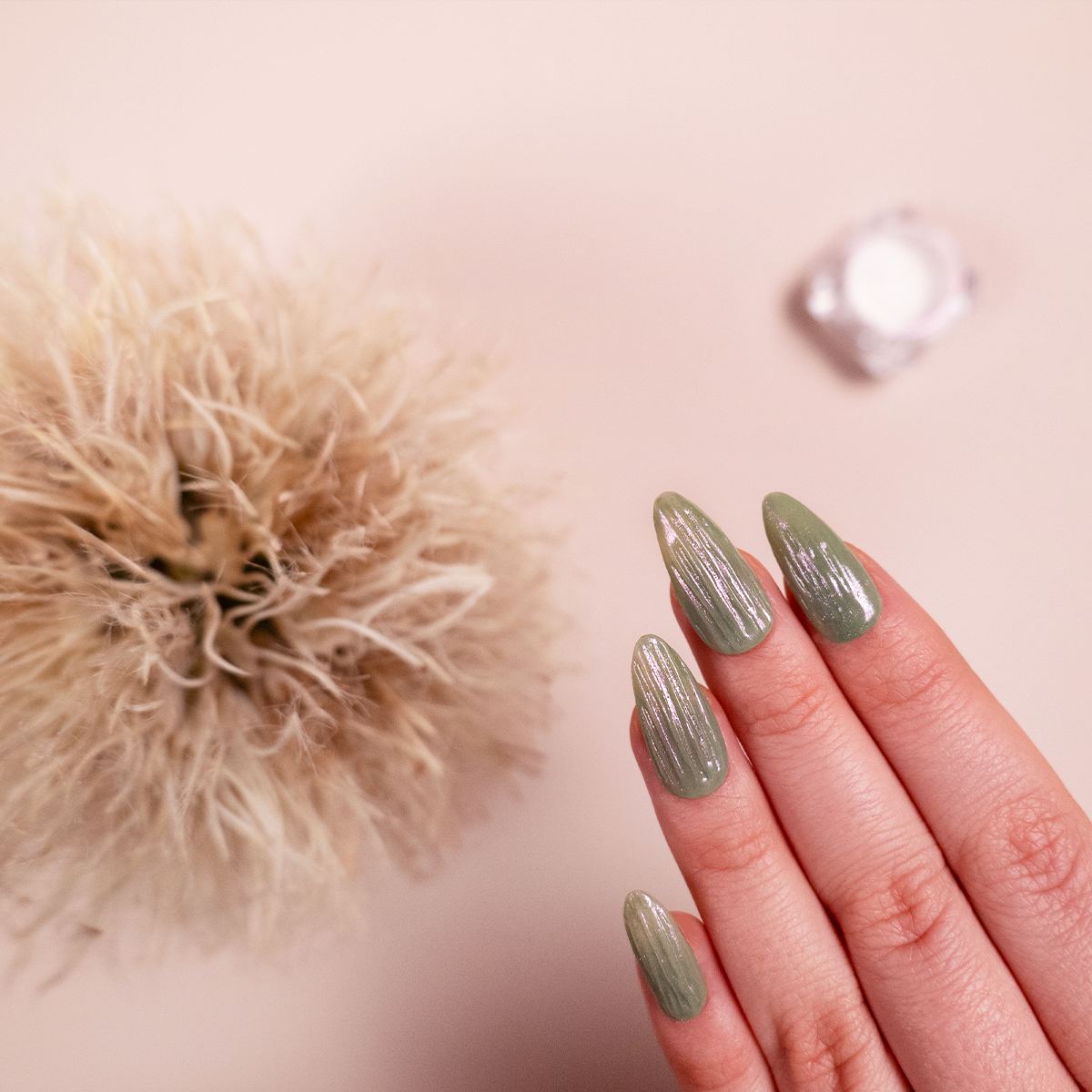 Sur une base de vernis vert Olive, les nuances de vert émeraude évoquent l'ombre luxuriante des arbres majestueux. Les pigments métalliques ajoutent une touche contemporaine, transformant chaque ongle en une parcelle de la nature capturée. Découvrez vite notre petite inspiration reflets enchantés.